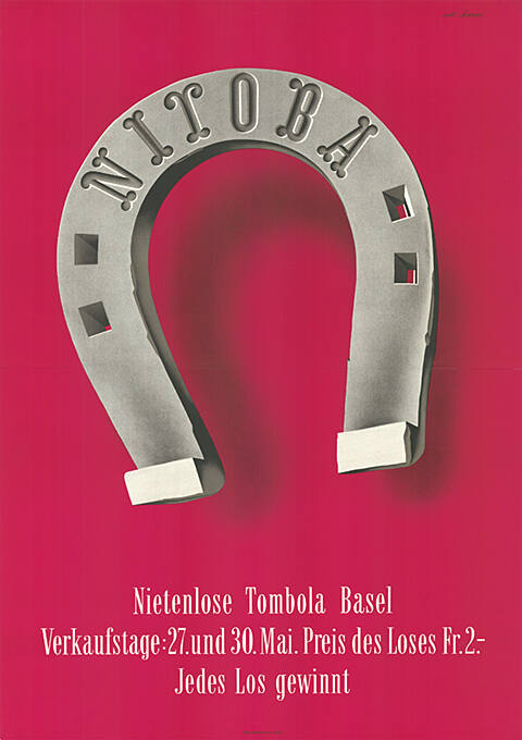 Nitoba, Nietenlose Tombola Basel, Verkaufstage: 27. und 30. Mai. Preis des Loses Fr. 2.-, Jedes Los gewinnt